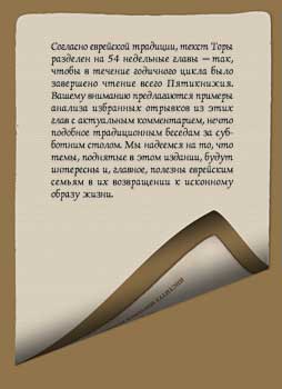 Согласно еврейской традиции, текст Торы разделен на 54 недельные главы – так, чтобы в течение годичного цикла было завершено чтение всего Пятикнижия. Вашему вниманию предлагаются примеры анализа избpанных отрывков из этих глав с актуальным комментарием, нечто подобное традиционным беседам за субботним столом. Мы надеемся на то, что темы, поднятые в этом издании, будут интересны и, главное, полезны еврейским семьям в их возвращении к исконному образу жизни. 2002 год, Иерусалим - Москва, 114 стр. К электронной версии книги >> |