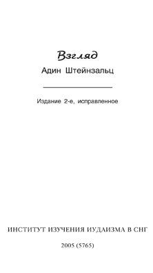 Адин Штейнзальц, Иерусалим-Москва, 2005, 272 стр., тв. обложка.