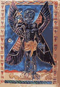 В сумерках в глубине колодца послышалось сопение и ворчание, а когда тьма окутала долину и горы, из колодца высунулась голова Асмодея. Беньямин, спрятавшийся за выступом скалы, хоть и не был робок, увидев демона ночи, испугался не на шутку. Асмодей был ростом с гору, весь покрыт густой черной шерстью и страшен, как сто чертей. Выбравшись на поверхность, дух ночи поднял своими ручищами громадный плоский камень, накрыл им колодец, поставил на камне свою печать и с громким свистом взвился в воздух.