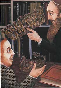 Придя в йешиву, он увидел еще молодого раввина, стоявшего к нему спиной и заканчивавшего урок. Перед ним, склонившись над толстыми книгами, сидели ученики, как двадцать лет назад сидел сам Шломо. Подойдя поближе, он заметил на столе раввина приготовленную к празднику медную ханукию, прикрепленную к деревянной ножке явно от другой ханукии. От изумления Шломо чуть не упал, а раввин, занятый своим делом, даже не заметил, как тот вошел. Не говоря ни слова, Шломо вынул из чемодана медную ножку и положил на стол рядом с ханукией. Раввин поднял глаза. Да, это был Йоселе. Две части ханукии нашли друг друга. Впервые за многие годы у Шломо и Йоселе была веселая Ханука.