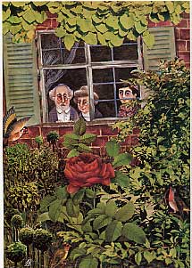 В один прекрасный день в доме раскрылись ставни, задымился камин, и в саду появился маленький мальчик. Не такой, правда, и маленький, почти молодой человек, поскольку ему уже минуло тринадцать лет. На нем был галстук, и в манжетах поблескивали запонки. Через открытые окна роза заметила старых господина и даму. Они были такими старыми, что не держались на ногах и весь день сидели в кресле.