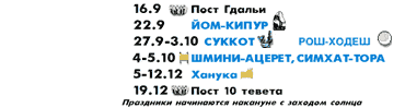Rosh Hashana 5768 Tamuz 17 Av 9 Lag Ba-Omer Yom Yerushalaim Shavuot Zom_10 Tevet Zom Gedalya Yom Kippur Simchat Torah Chanukka Succot