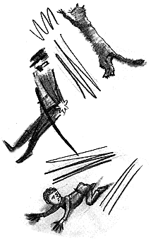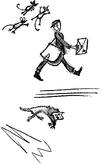 Кошка уже давно удрала. Почтальон поспешно выходит и осторожно прикрывает
