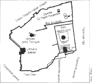 Все трое вышли из огромного здания, господствующего над главной улицей Иерусалима. Это церковь, одна из многих, построенных здесь за то время, что сменились два последних поколения, - с тех самых пор, когда император Константин сделал христианство официальной религией Римской империи и стал обустраивать Иерусалим как главный религиозный центр. Эта церковь - самая роскошная в империи, она была возведена там, где, согласно христианским верованиям, совершилось распятие и погребение Иисуса. Это здание великолепно и снаружи и внутри Паломники и гости Иерусалима сразу же приходят сюда, чтобы совершить молитву и полюбоваться его красотой.