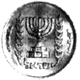 На монете изображен израильский национальный символ - менора - с двумя оливковыми ветвями.