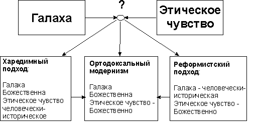2. Два исходных противоположных подхода к решению проблем столкновения галахи и этики – подход охранительный («харедимный») и подход обновленческий («реформаторский»)Итак, перед нами конфликт столкновения Галахи и этического чувства.