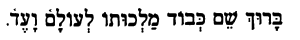 Бару'х Шем квод Малхуто' ле-ола'м ва-э'д.